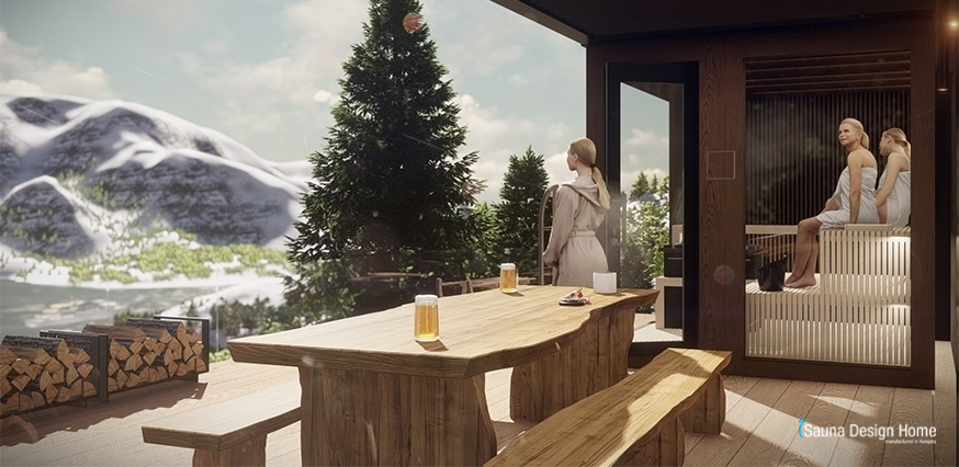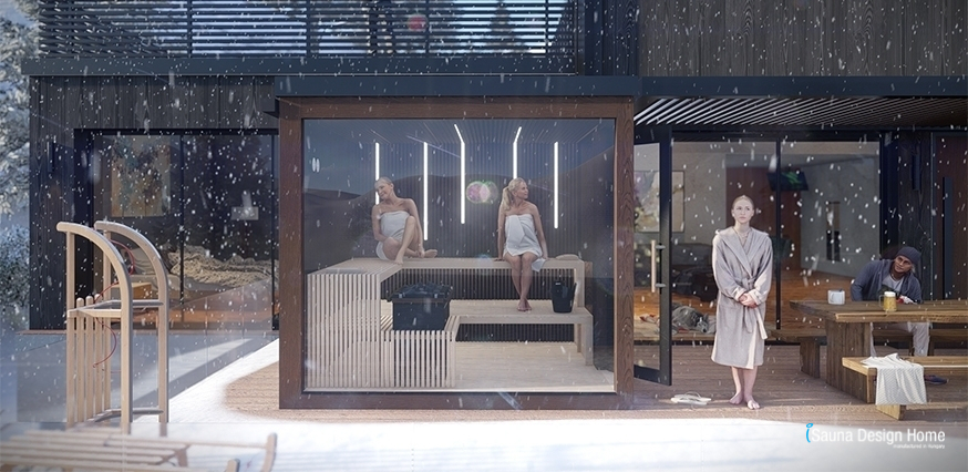 Our new Finnish outdoor sauna model 2022, called “Fusion”, offers an unforgettable sauna experience for 4-5 people.