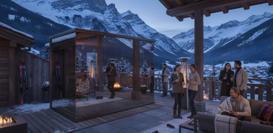 Outdoor sauna, where glass is not a boundary but space